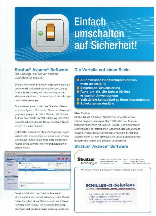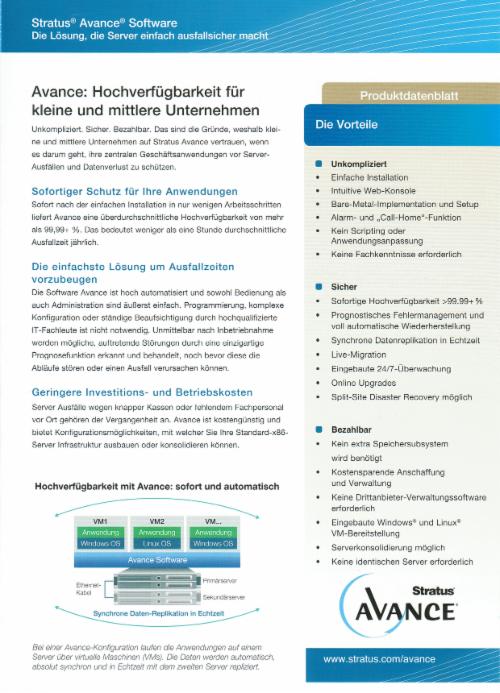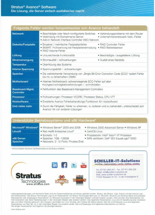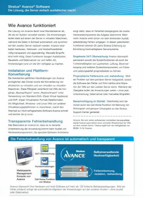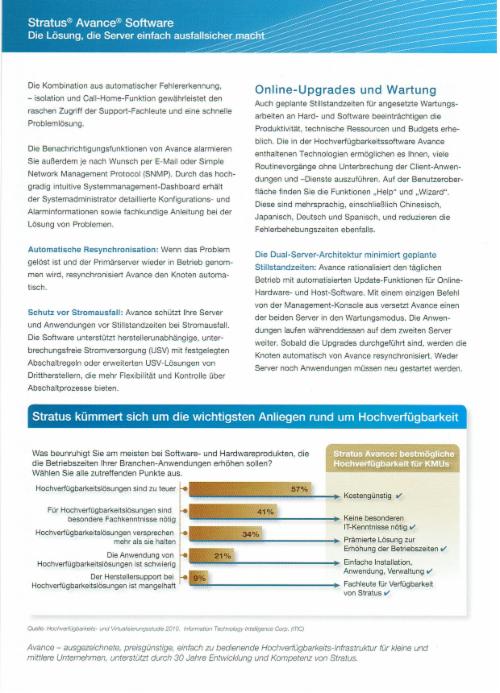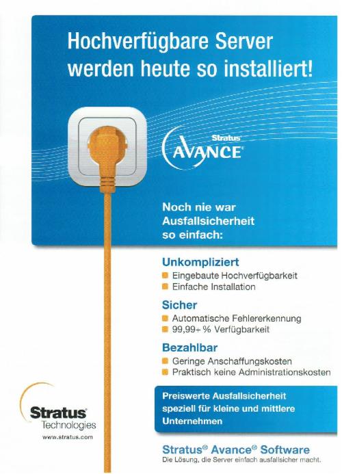 Wir können Ihnen Hochverfügbarkeitssysteme mit einer Ausfallsicherheit von 99,99% bieten. Die Komplettlösungen bestehen aus skalierbarer, qualitativ hochwerti-ger Hardware in Verbindung mit Hochverfügbarkeitssoftware von Stratus, die zunächst für die hochsensiblen Bereiche Banken, Börsen und Energieversorung entwickelt wurde.